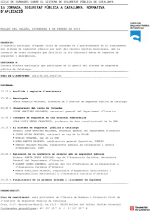 Cicle de jornades sobre el sistema de seguretat pública de Catalunya (2013)