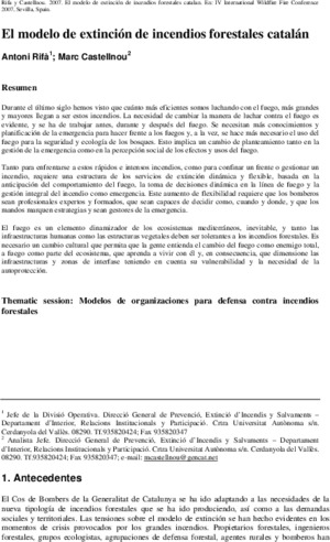 (2007)Al llarg del darrer segle hem vist que quant més eficients som lluitant amb el foc, més grans i majors arriben a ser aquests incendis. La necessitat de canviar la manera de lluitar contra el foc és ... -