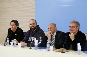 (2008-04-14)Fotografia de Joan Boada i Masoliver, Maria Jesús Bono i Francesc Foguet en la presentació de l'exposició ‘Teatre en temps de guerra i revolució’ (1936-1939). -