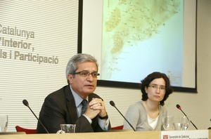 Roda de premsa de presentació del mapa de fosses de Catalunya i les pròximes actuacions del Departament en aquest àmbit (2008) [Fotografia]