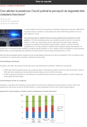 Departament d’Interior (Publicat dins el Blog Notes de seguretat https://notesdeseguretat.blog.gencat.cat/, 2018-06-18)Nota informativa sobre com afecten la presència i l’acció policial la percepció de seguretat dels ciutadans francesos.
