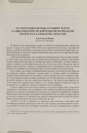 Un nuevo espacio para un orden nuevo: la organización de servicios municipales de policía en la ciudad del siglo XIX (2001)