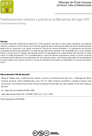 Transformaciones urbanas y policía en la Barcelona del siglo XIX (2003)