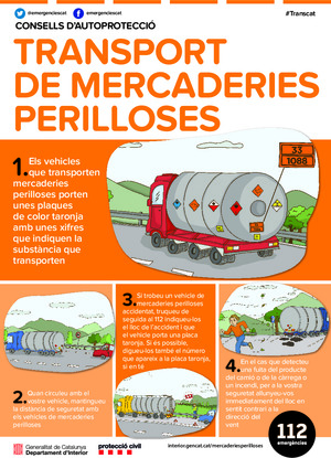 Protecció Civil (2019)Consells per actuar davant d'un accident dels vehicles que transporten mercaderies perilloses.