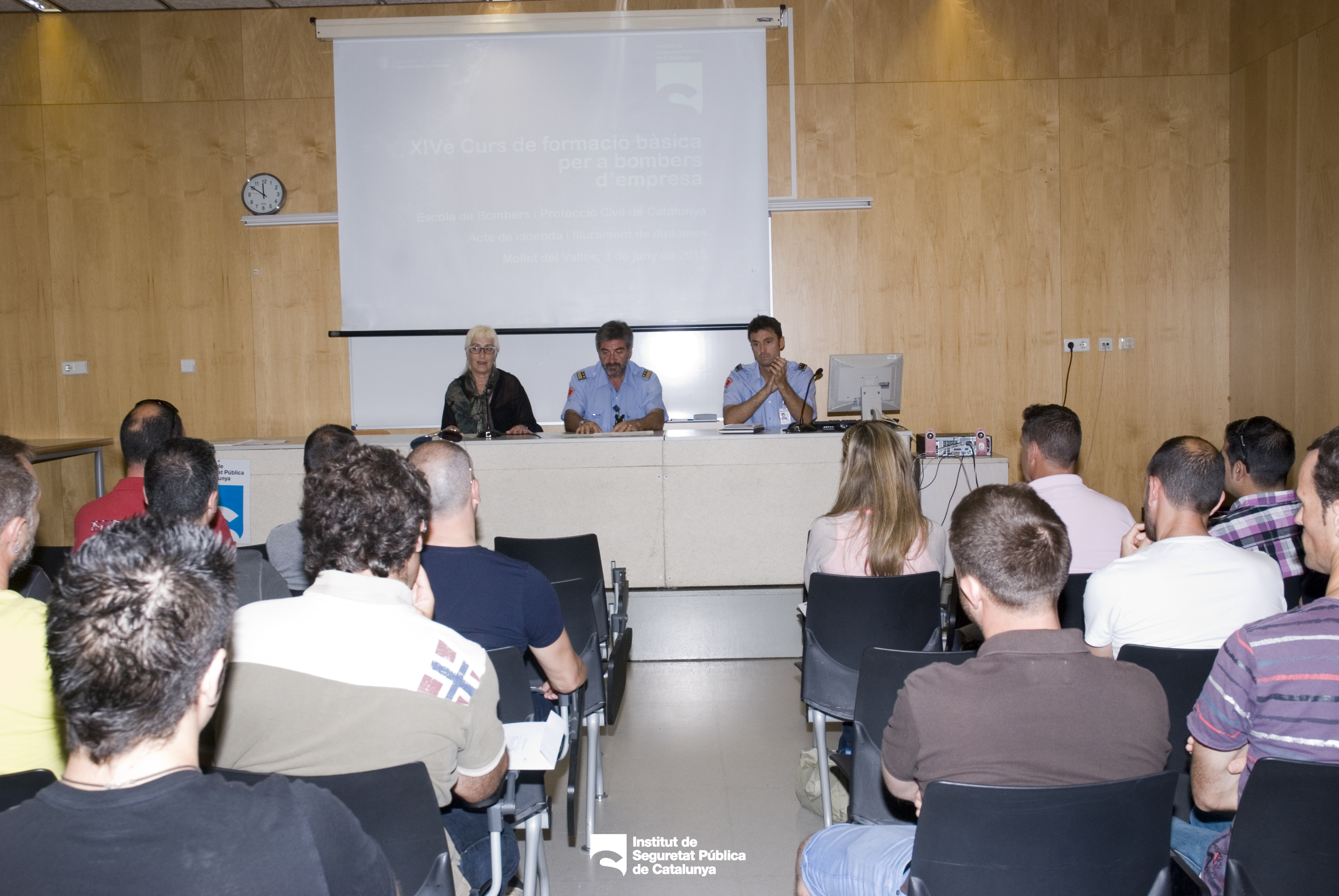 Acte de cloenda del Curs de formació bàsica per bombers d'empresa celebrat a l'Institut de Seguretat Pública de Catalunya el dia 3 de juny de 2015.Note