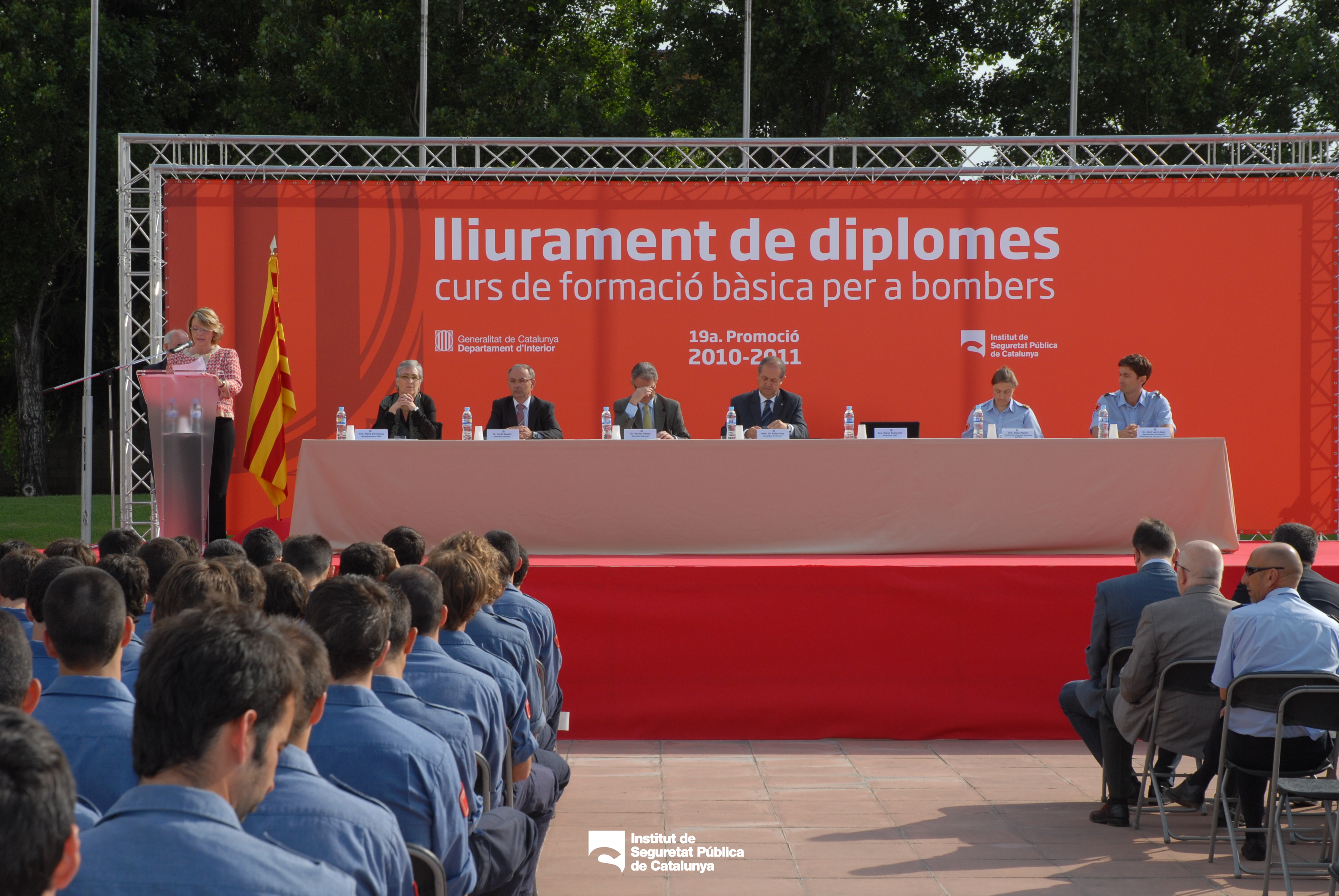 Acte de cloenda de la 19a promoció del Curs de formació bàsica per a bombers i bomberes, celebrat el 27 de maig de 2011.Note
