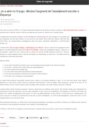 Departament d'Interior (Publicat dins el Blog Notes de seguretat https://notesdeseguretat.blog.gencat.cat/, 2016-09-28)Nota informativa sobre l’augment de l’assetjament escolar a Espanya. -