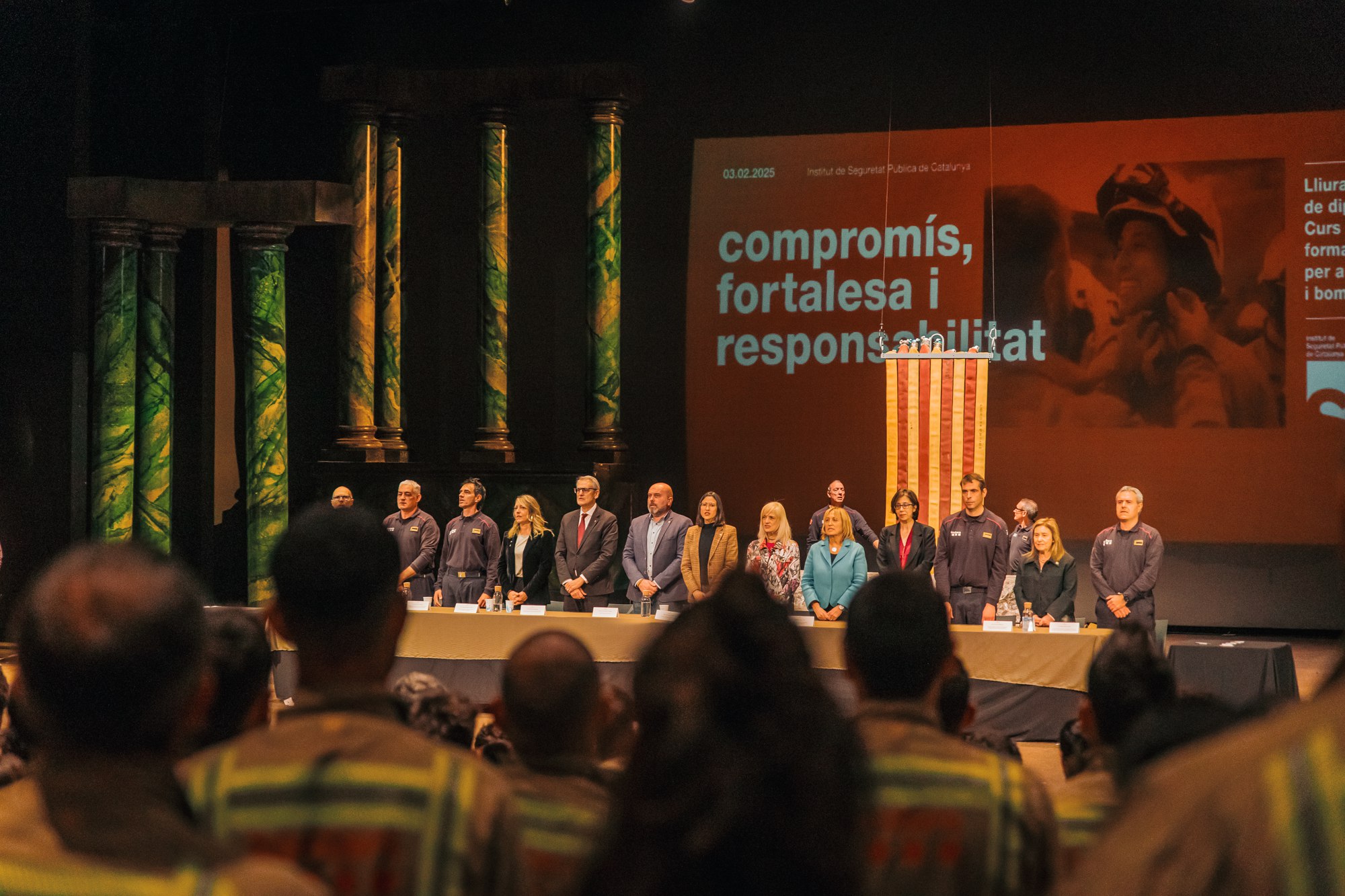 Acte de cloenda de la 25a promoció del Curs de formació bàsica per a bombers i bomberes, celebrat el dia 2 de febrer de 2025, al teatre La Passió (Olesa de Montserrat).Note