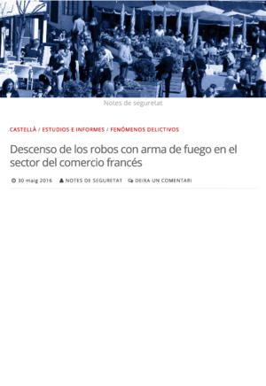 Departament d'Interior. Descens dels robatoris amb arma de foc al sector del comerç francès. En: Notes de Seguretat (Blog) <https://notesdeseguretat.blog.gencat.cat>. Barcelona: Departament d'Interior, 2016. 3 p.