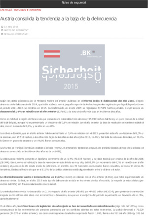 Departament d'Interior. Àustria consolida la tendència a la baixa de la delinqüència. En: Notes de Seguretat (Blog) <https://notesdeseguretat.blog.gencat.cat>. Barcelona: Departament d'Interior, 2016. 2 p.