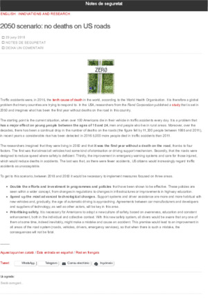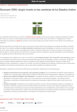Nota informativa sobre una sèrie de mesures que per arribar a 2050 sense cap mort per accidents a la carretera als Estats Units d’Amèrica.Citació recomanada