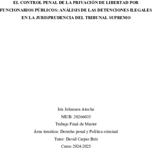 (2025-09)Aquest document analitza el fenomen de les detencions il·legals practicades per autoritats o funcionaris públics en l'ordenament jurídic espanyol, des d'una perspectiva jurídica i polític-criminal, amb ... -