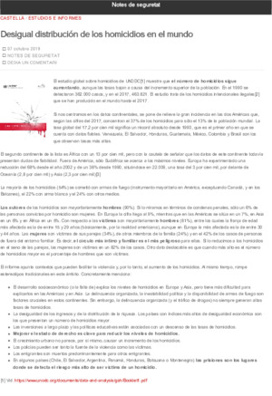 Departament d'Interior. Desigual distribució dels homicidis al món. En: Notes de Seguretat (Blog) <https://notesdeseguretat.blog.gencat.cat>. Barcelona: Departament d'Interior, 2019. 2 p.