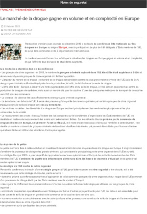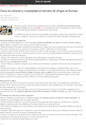 Departament d'Interior. Creix en volum i complexitat el mercat de drogues a Europa. En: Notes de Seguretat (Blog) <https://notesdeseguretat.blog.gencat.cat>. Barcelona: Departament d'Interior, 2020. 2 p.