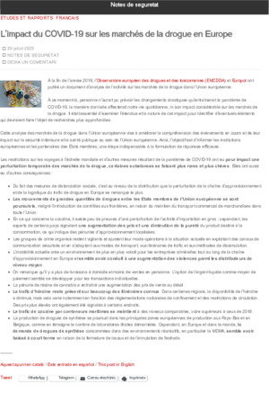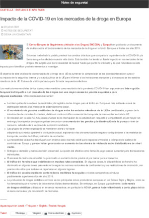 Departament d'Interior. Impacte de la COVID-19 en els mercats de la droga a Europa. En: Notes de Seguretat (Blog) <https://notesdeseguretat.blog.gencat.cat>. Barcelona: Departament d'Interior, 2020. 2 p.