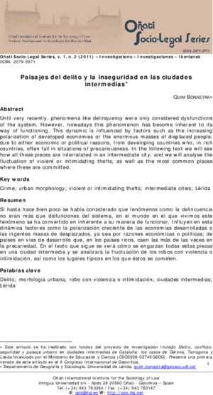 Paisajes del delito y la inseguridad en las ciudades intermedias (2011)