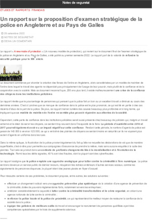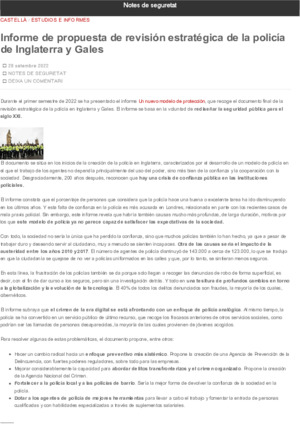 Departament d'Interior. Informe de proposta de revisió estratègica de la policia d’Anglaterra i Gal·les. En: Notes de Seguretat (Blog) <https://notesdeseguretat.blog.gencat.cat>. Barcelona: Departament d'Interior, 2022. 2 p.