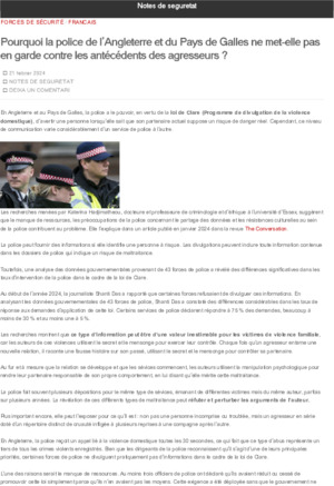 Departament d'Interior. Per què la policia d’Anglaterra i Gal·les no avisa sobre l’historial dels maltractadors? En: Notes de Seguretat (Blog) <https://notesdeseguretat.blog.gencat.cat>. Barcelona: Departament d'Interior, 2024. 2 p.