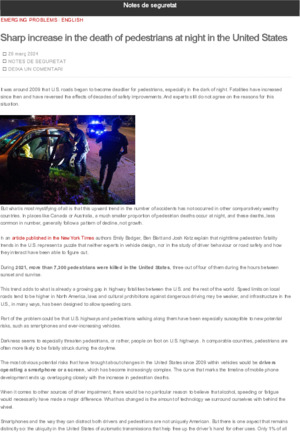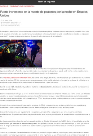 Departament d'Interior. Fort increment en la mort de vianants a la nit als Estats Units. En: Notes de Seguretat (Blog) <https://notesdeseguretat.blog.gencat.cat>. Barcelona: Departament d'Interior, 2024. 2 p.