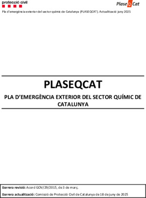 Direcció General de Protecció Civil. Pla d’emergència exterior del sector químic de Catalunya (PLASEQCAT). Barcelona: Direcció General de Protecció Civil, 2025. 104 p.; 1 annex.