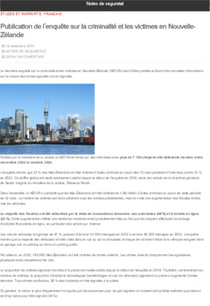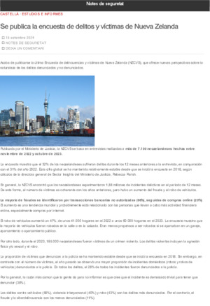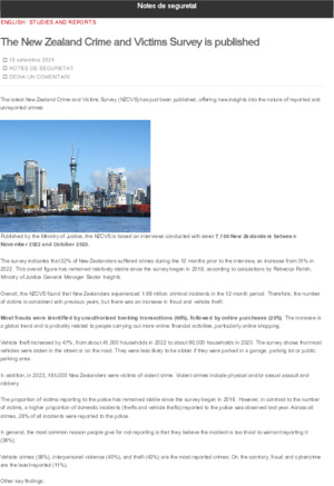 Departament d'Interior i Seguretat Pública. Es publica l’enquesta de delictes i víctimes de Nova Zelanda. En: Notes de Seguretat (Blog) <https://notesdeseguretat.blog.gencat.cat>. Barcelona: Departament d'Interior i Seguretat Pública, 2024. 2 p.
