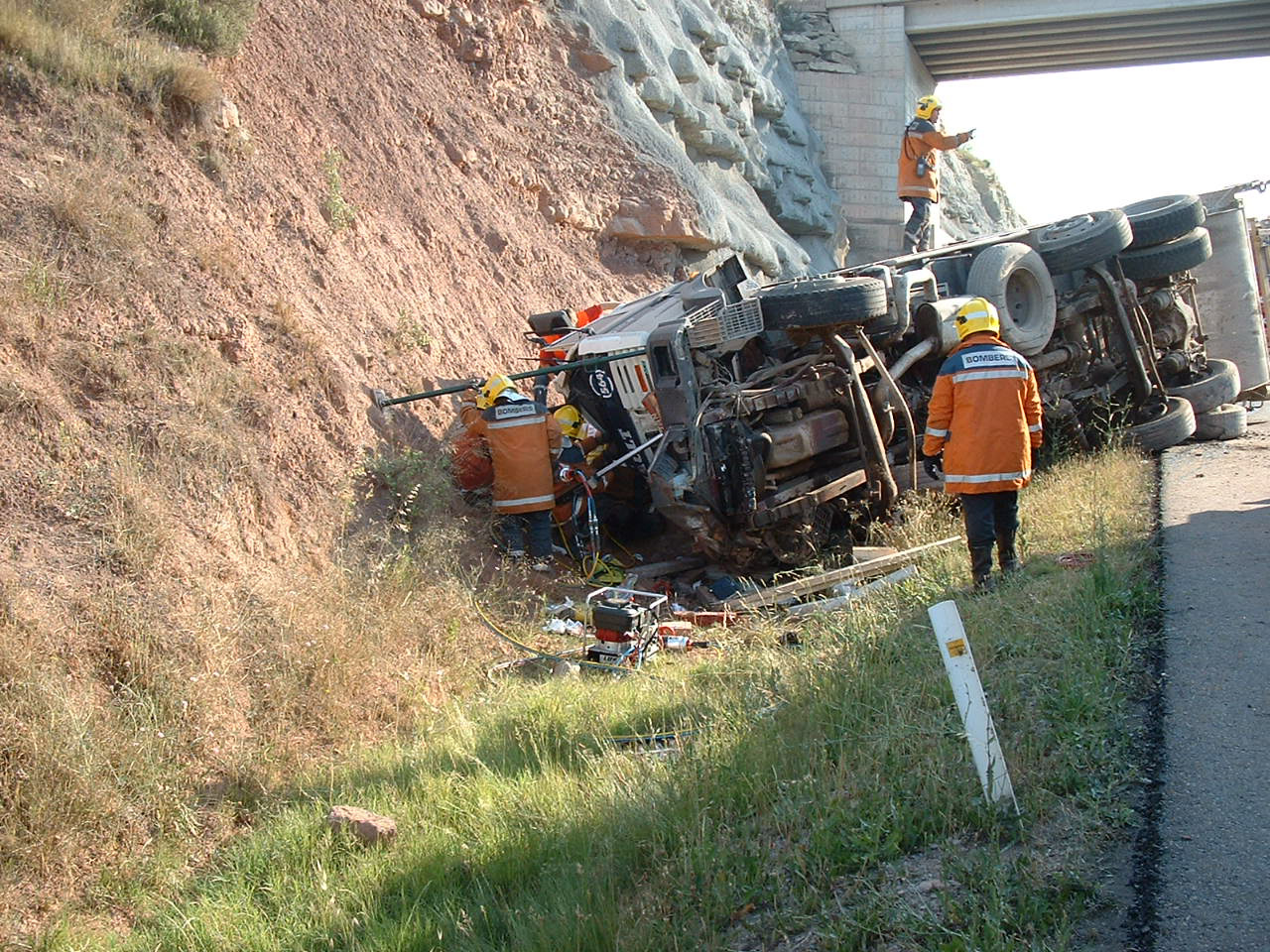 Fotografia d’un camió accidentat a Sant Fruitós de Bages amb la intervenció de salvament de Bombers.Recommended citation