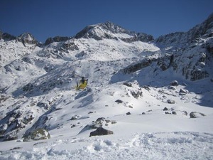 Fotografia d'un rescat amb un helicòpter de Bombers per un allau a Punta Alta de Comalesbienes, a la Vall de Boí.Recommended citation