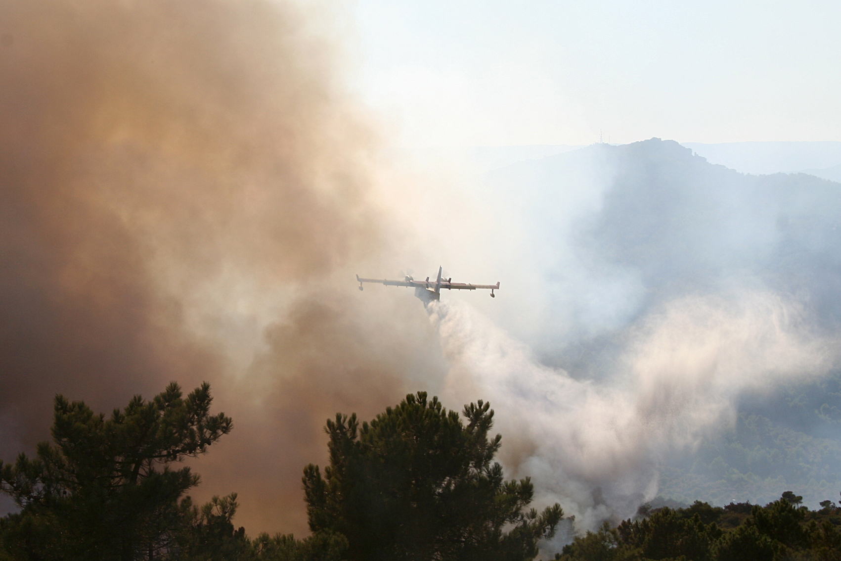 Bombers (2007-07-05)Fotografies d'un incendi forestal a Mont-roig del Camp, un avió cisterna i un helicòpter de Bombers fent tasques d'extinció. -