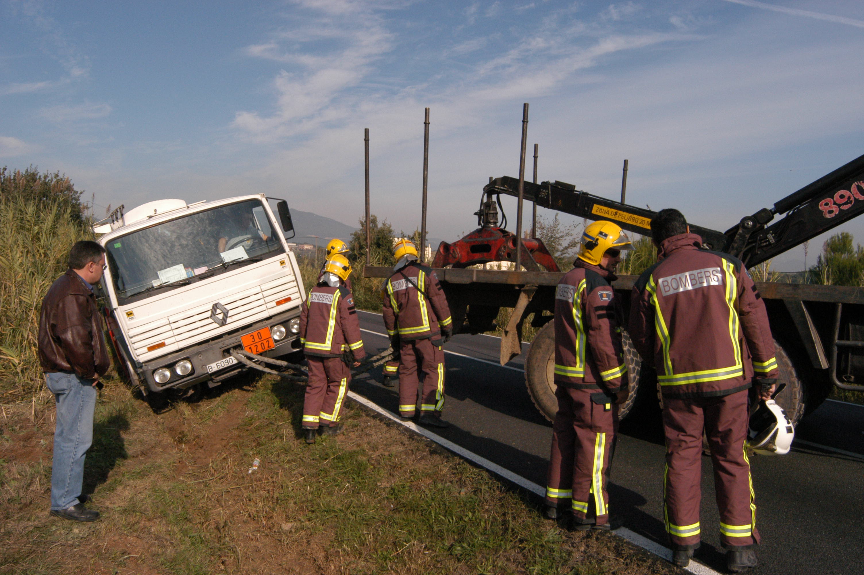Bombers (2003-06-09)Fotografia d’un camió accidentat a Sant Fruitós de Bages amb la intervenció de salvament de Bombers.