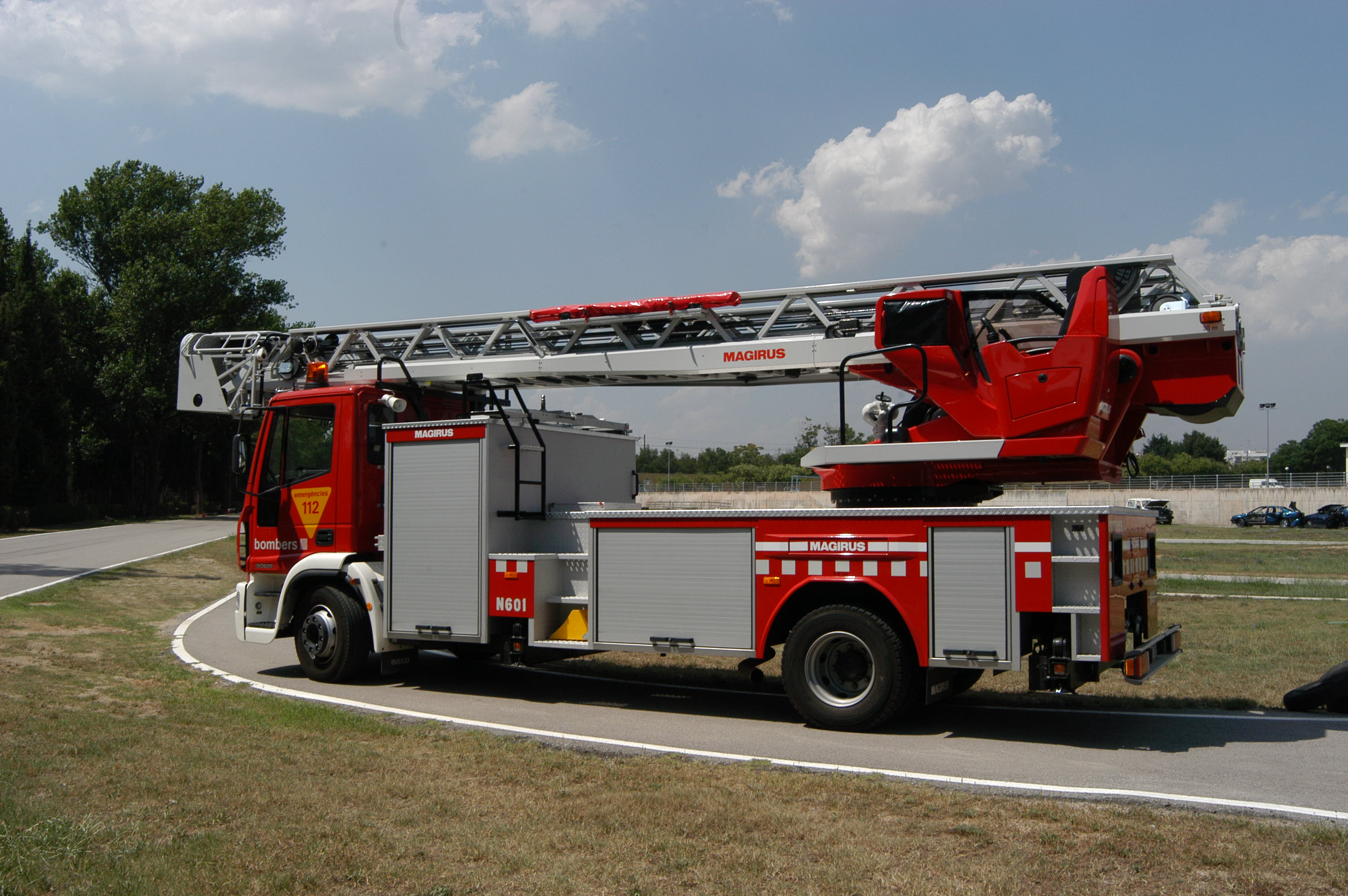 Fotografia d'un vehicle autoescales dels Bombers.Recommended citation