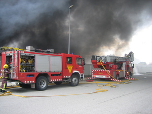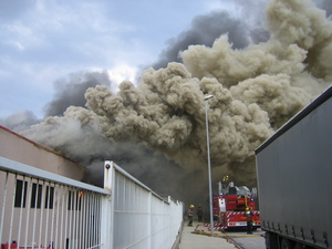 Departament d'Interior, Relacions Institucionals i Participació (2007-08-14)Fotografia de l'actuació de Bombers en un incendi d'una nau industrial del polígon Can Jardí de Rubí. -