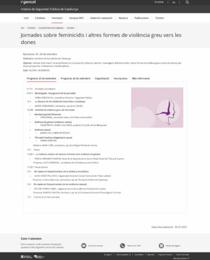 Institut de Seguretat Pública de Catalunya. Jornades feminicidis i altres formes de violència greu vers les dones. Mollet del Vallès: Institut de Seguretat Pública de Catalunya, 2025.