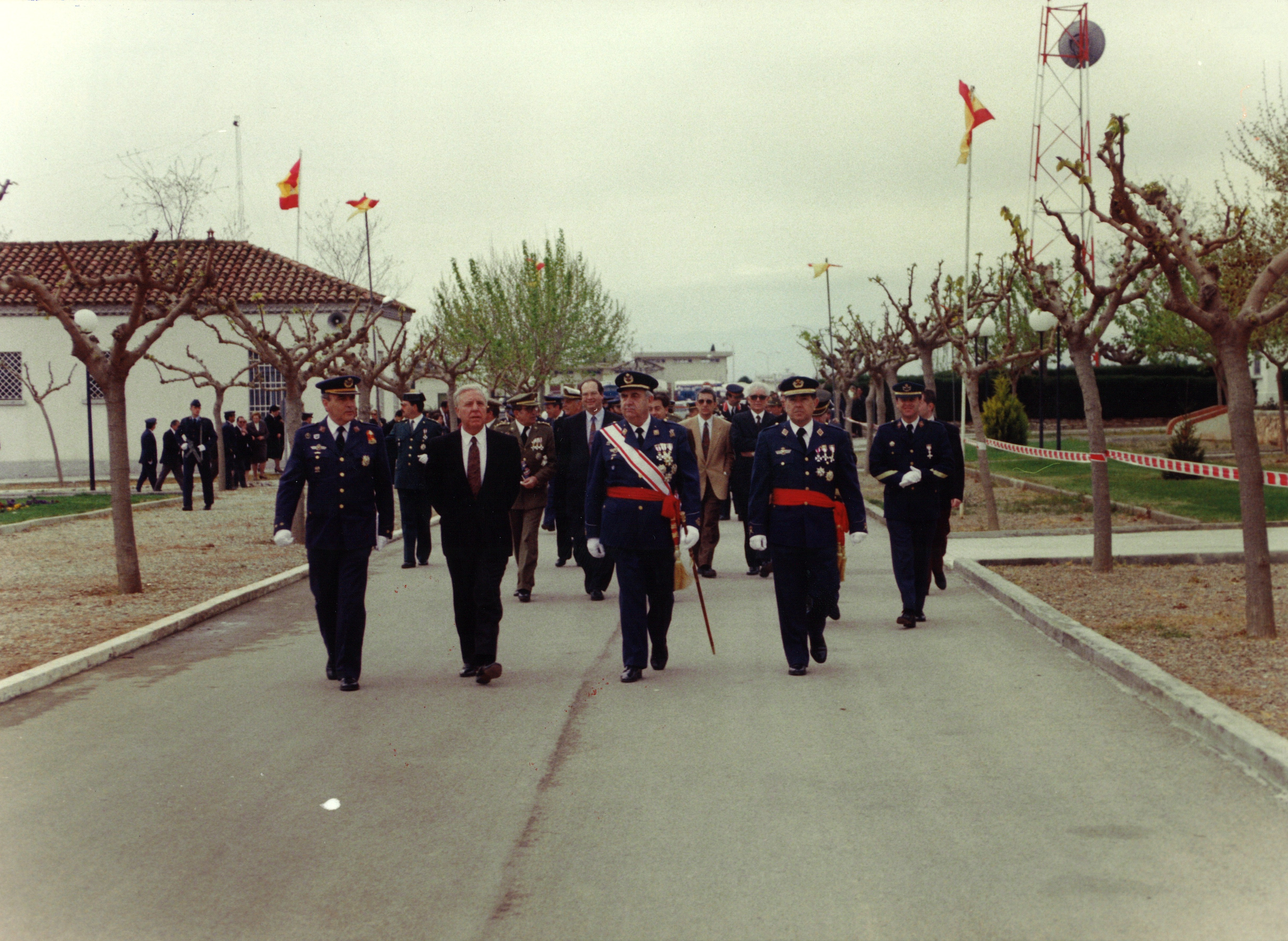 Fotografia d'una visita del conseller de Governació Josep Gomis i Martí a la Base Aèria de Reus, on el conseller apareix envoltat de militars.Recommended citation