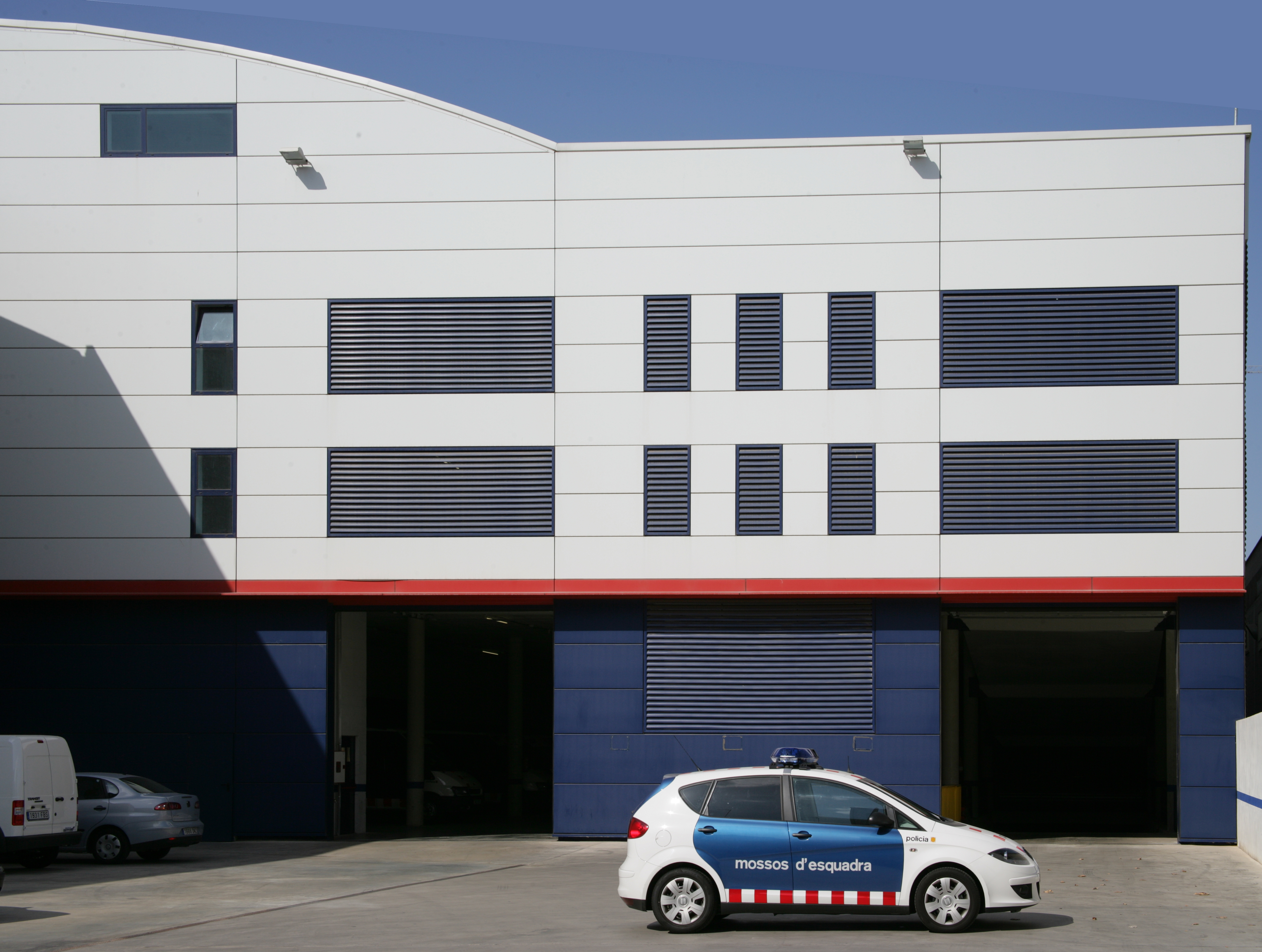 Fotografia de l'exterior de la Comissaria de Mossos d'Esquadra del Districte de Sant Martí amb un cotxe policial aparcat al davant.Recommended citation