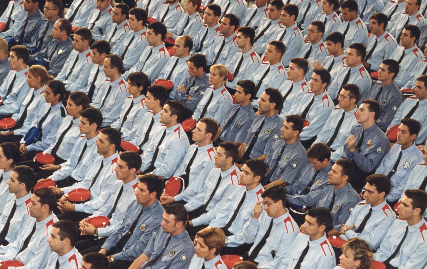 Fotografia dels alumnes de l'Escola de Policia de Catalunya asseguts en fileres.Recommended citation