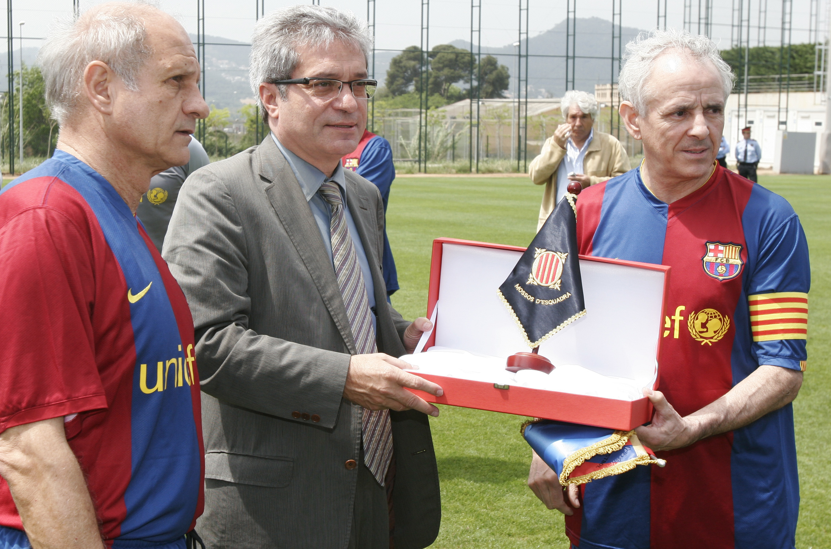 Assistència del conseller al partit de futbol entre l'equip de veterans del Barça i l'equip d'agents dels Mossos d'Esquadra (2007) [Fotografia]