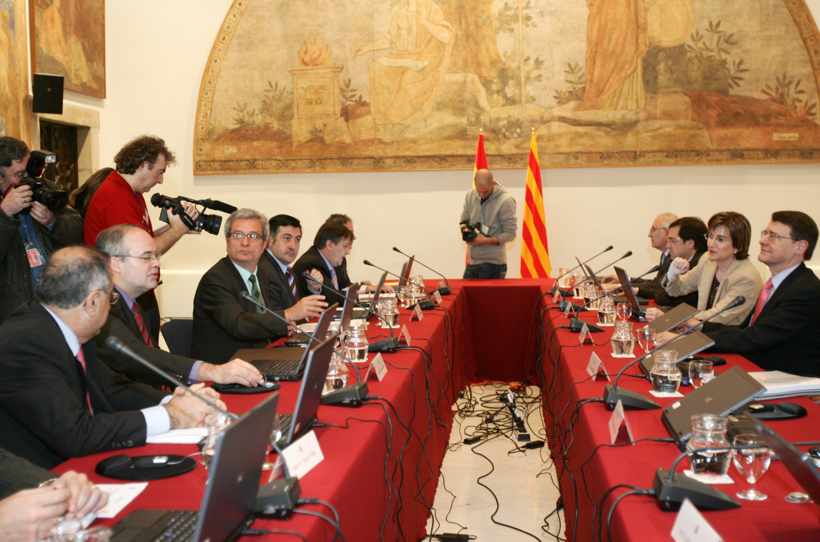 Fotografies de la Comissió Bilateral Generalitat – Estat, amb l'assistència del conseller del Departament d'Interior, Relacions Institucionals i Participació Joan Saura i Laporta, el minsitre d'Administracions Públiques Jordi Sevilla Segura, el conseller d'Economia i Finances Antoni Castells i Oliveres i el conseller de Governació Joan Puigcercós i Boixassa, el delegat del Govern espanyol a Catalunya Joan Rangel i Tarrés i Ana Leiva, entre altres representants polítics.Recommended citation