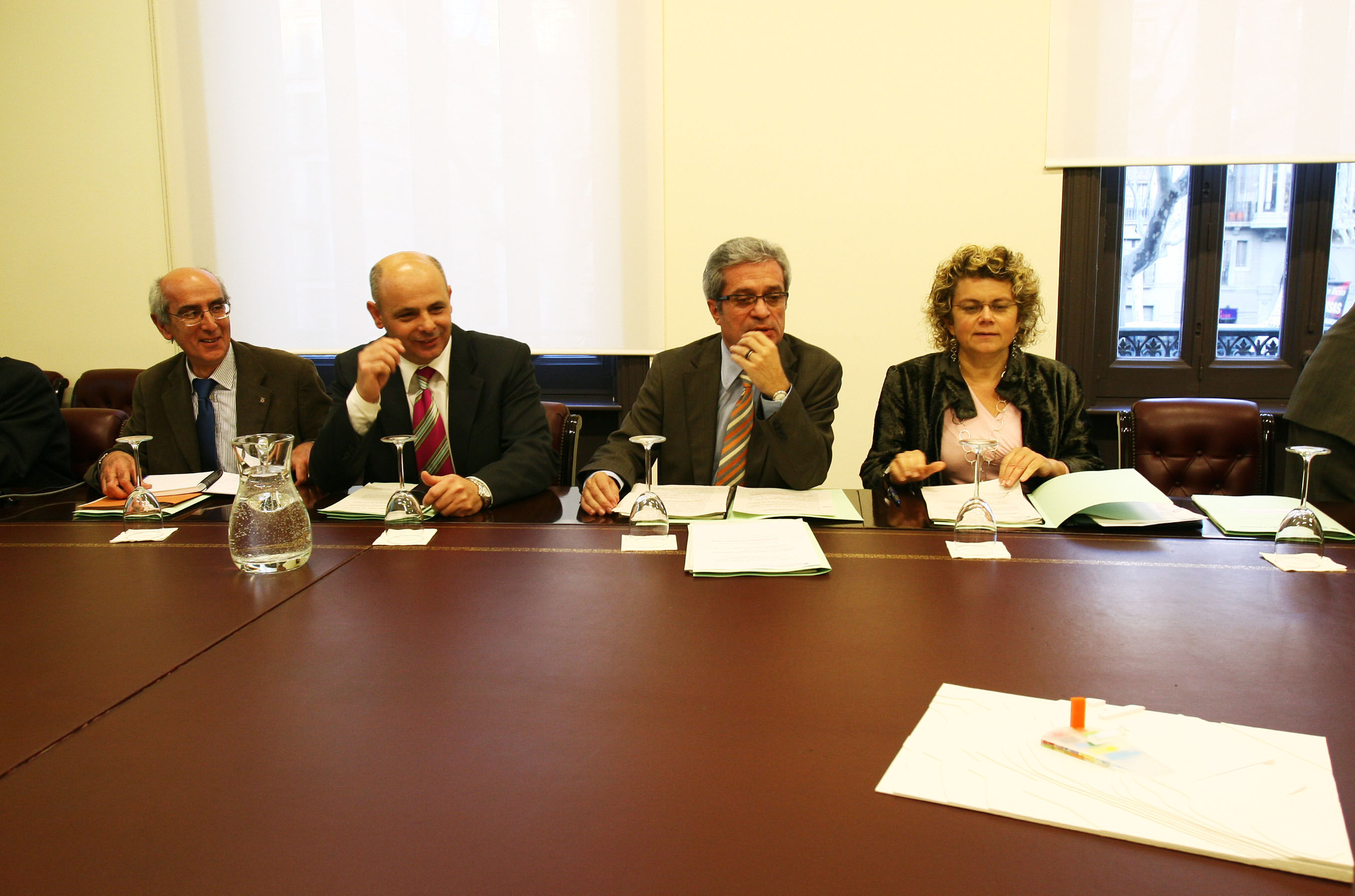 Fotografia de la constitució del nou Consell Rector del 112 amb el conseller del Departament d'Interior, Relacions Institucionals i Participació Joan Saura, Josep Ramon Mora Villamate, Joan Boada i Masoliver i Marina Geli.Recommended citation