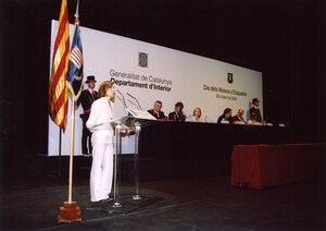 Guillamet, Eva (2007-04-25)Fotografia de l'acte del Dia de les Esquadres al pati del Teatre Nacional de Catalunya, el conseller del Departament d'Interior, Relacions Institucionals i Participació Joan Saura i Laporta i Rafael ... -