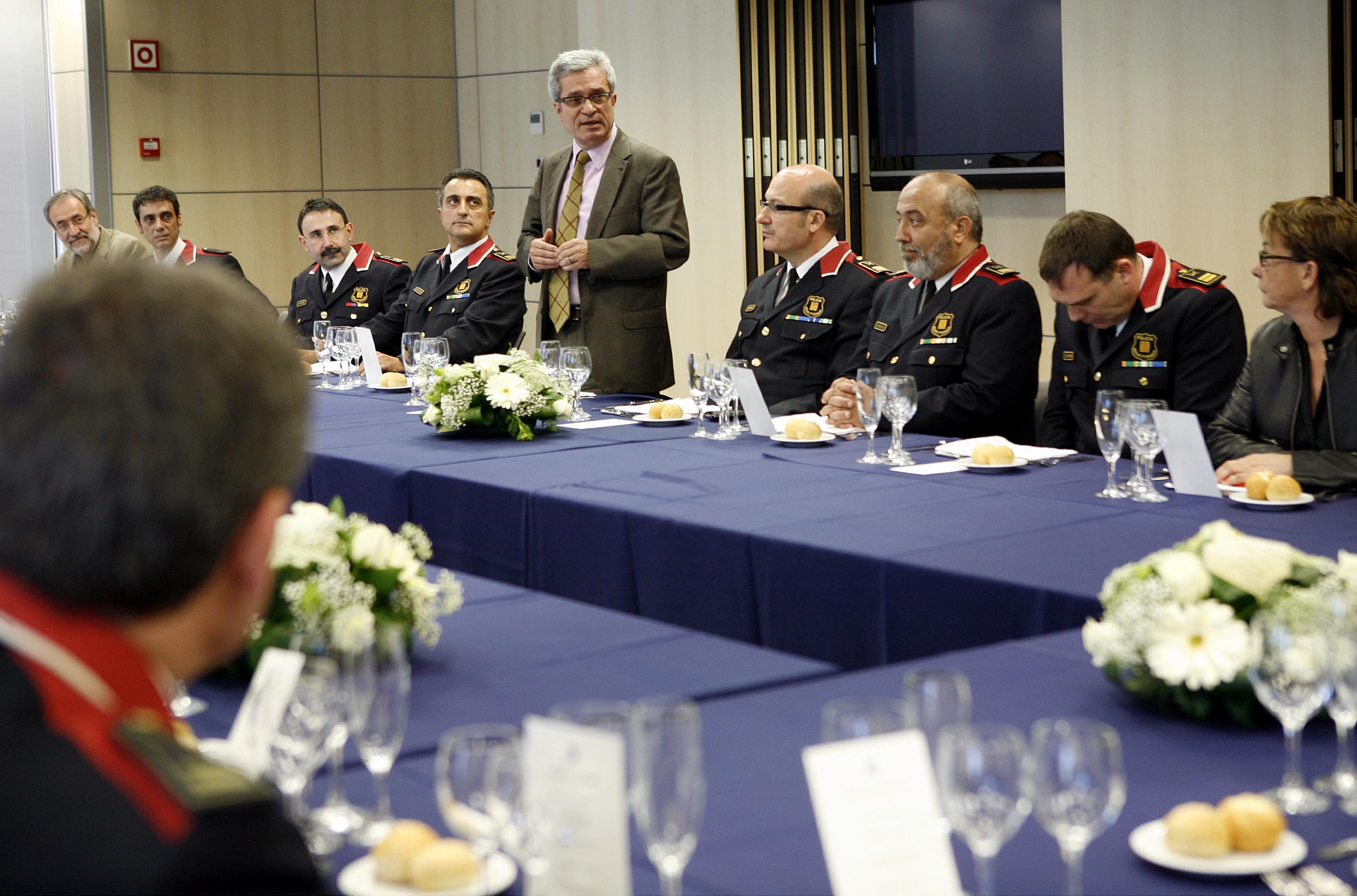 Fotografies del dinar amb els comandaments de Mossos d'Esquadra previ a l'acte central de celebració del Dia de les Esquadres, amb l'assistència del conseller del Departament d'Interior, Relacions Institucionals i Participació Joan Saura i Laporta, Joaquim Bayarri, Josep Lluís Trapero, Joan Carles Molinero, Joaquim Belenguer, Manel Castellví del Peral, Josep Milán i JoanMartínez Roma, entre altres personalitats.Recommended citation