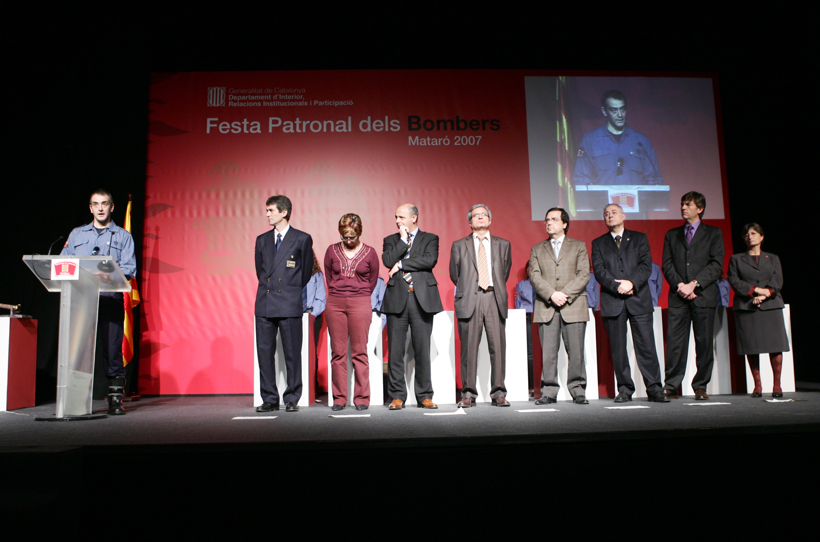 Fotografies de la Festa patronal dels Bombers de Mataró, amb l'assistència del conseller del Departament d'Interior, Relacions Institucionals i Participació Joan Saura i Laporta, Toni Rifà, Olga Lanau Rami, Joan Boada i Masoliver, Joan Rangel i Joan Antoni Baron, entre altres personalitats.Recommended citation