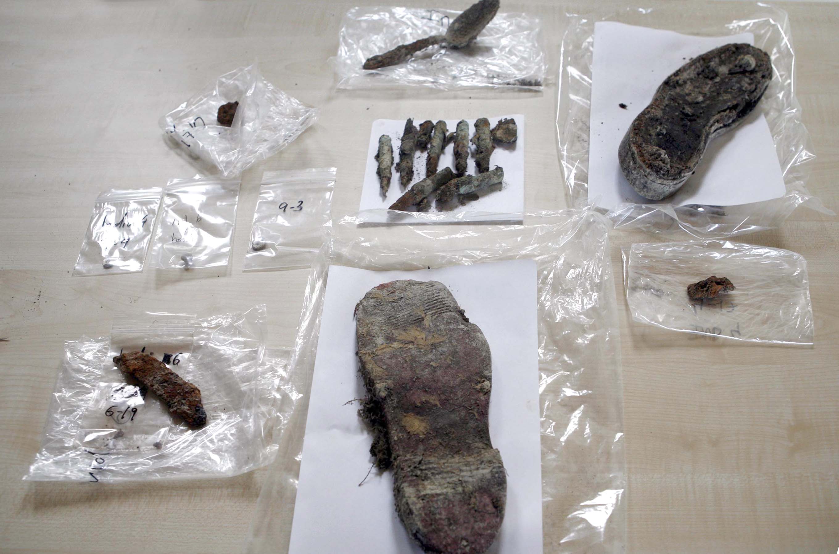 Fotografies dels final dels treballs d'exhumació de la fossa comuna de Gurb i objectes trobats vora les restes dels cossos.Recommended citation