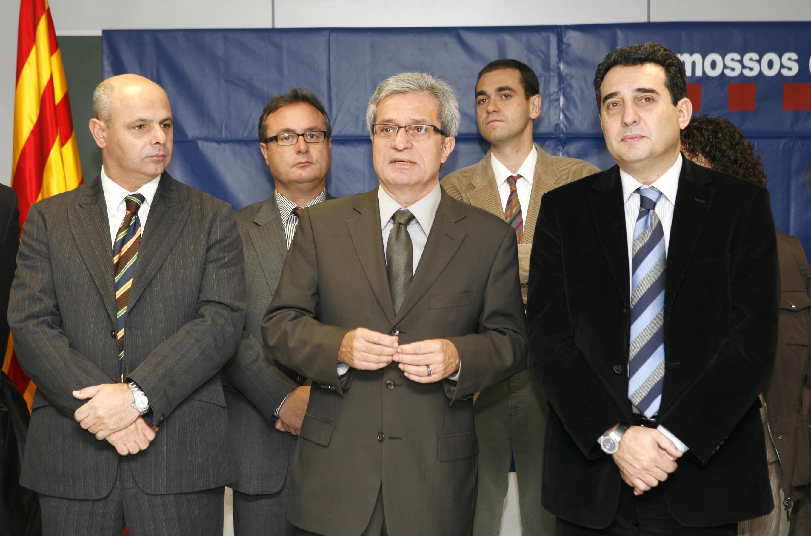 Fotografia del conseller del Departament d'Interior, Relacions Institucionals i Participació Joan Saura, Joan Boada i Masoliver i Manuel Bustos Garrido, entre altres personalitats, en la inauguració de la nova comissaria dels Mossos d'Esquadra de Sabadell.Citación recomendada