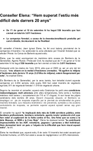 Departament d'Interior; Departament d'Agricultura, Ramaderia, Pesca i Alimentació (2020)Notes de premsa sobre la presentació i balanç de la campanya forestal del 2020.