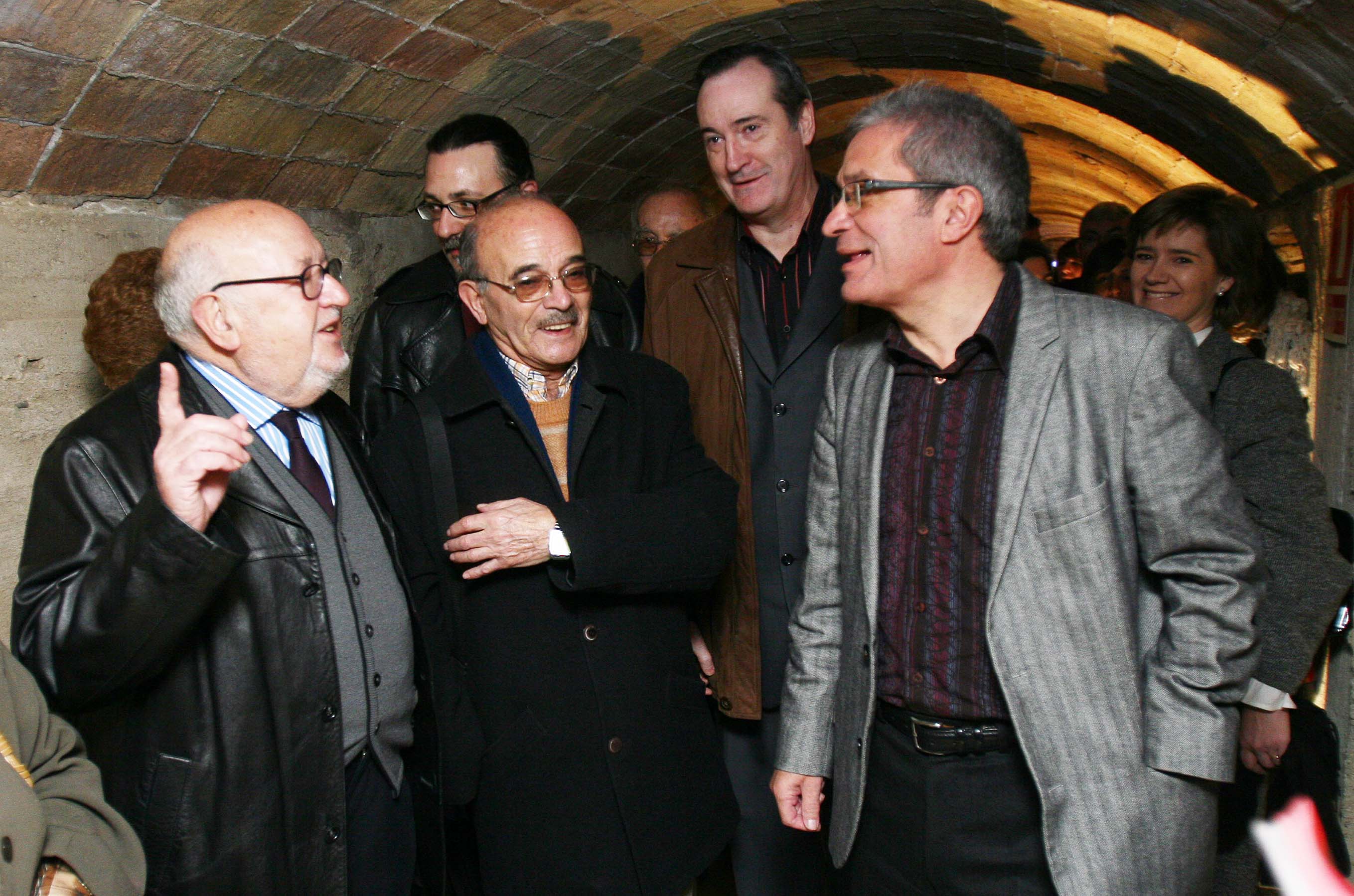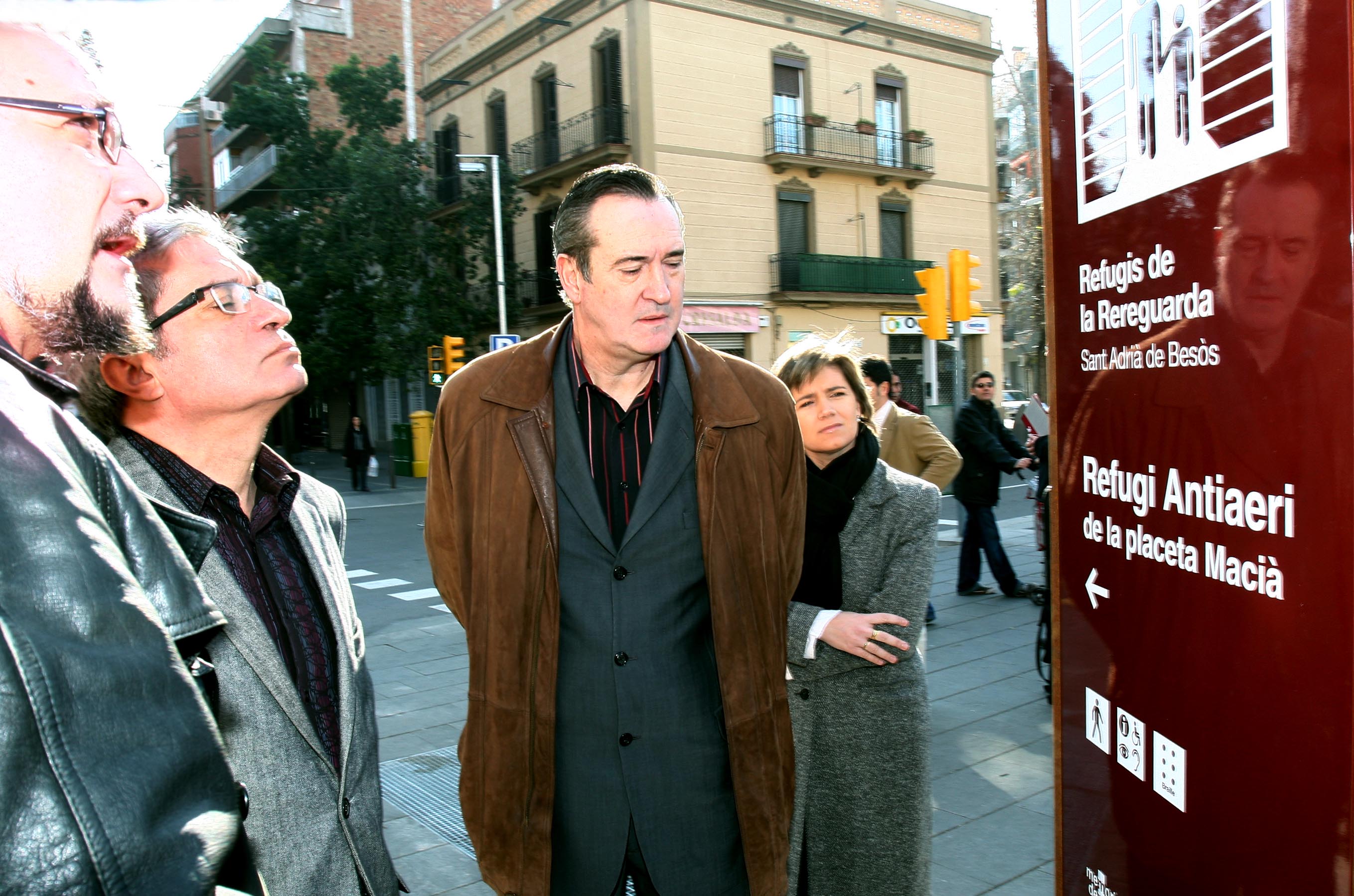 Fotografies del conseller del Departament d'Interior, Relacions Institucionals i Participació Joan Saura i Laporta i Jesús María Canga, María Enciso, entre altres personalitats, en la inauguració de la senyalització i museïtzació del refugi antiaeri de la Guerra Civil a la plaça Macià.Recommended citation