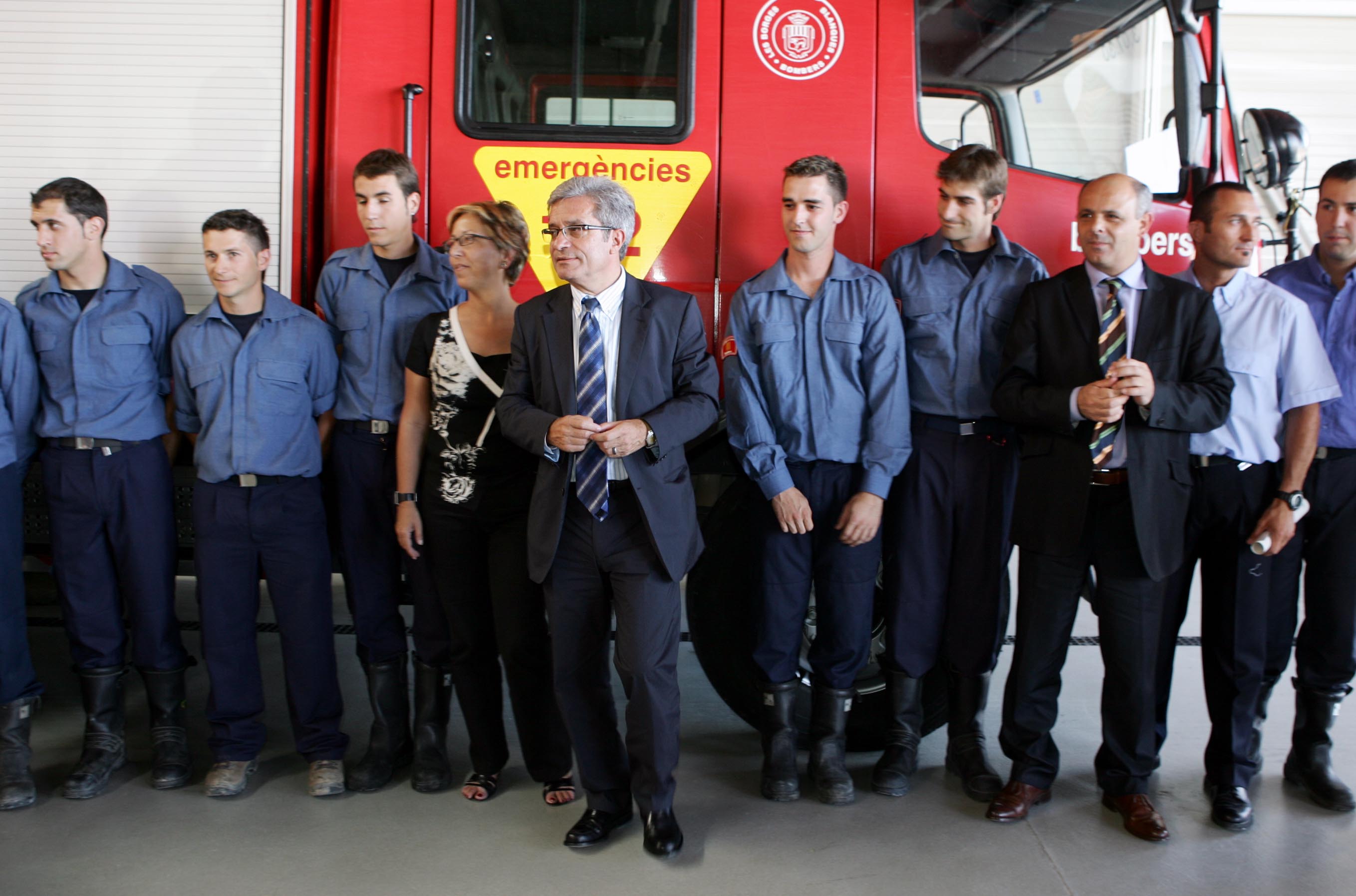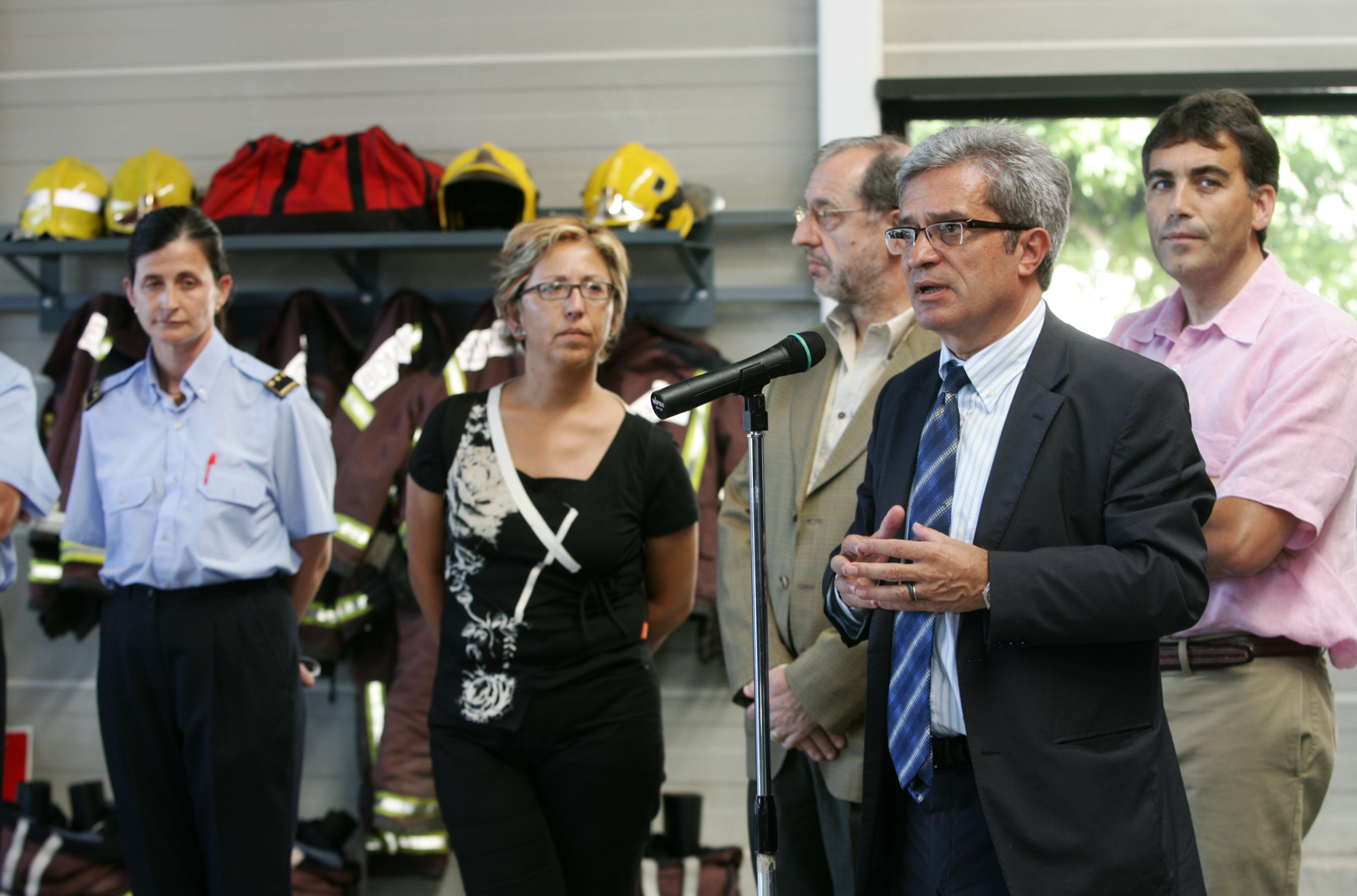 Fotografies del conseller del Departament d'Interior, Relacions Institucionals i Participació Joan Saura i Laporta, Olga Lanau i Rami, Joan Boada i Masoliver, Mercè López i Miquel Àngel Estradé, entre altres personalitats, en la inauguració del Parc de Bombers Voluntaris de les Borges Blanques.Recommended citation