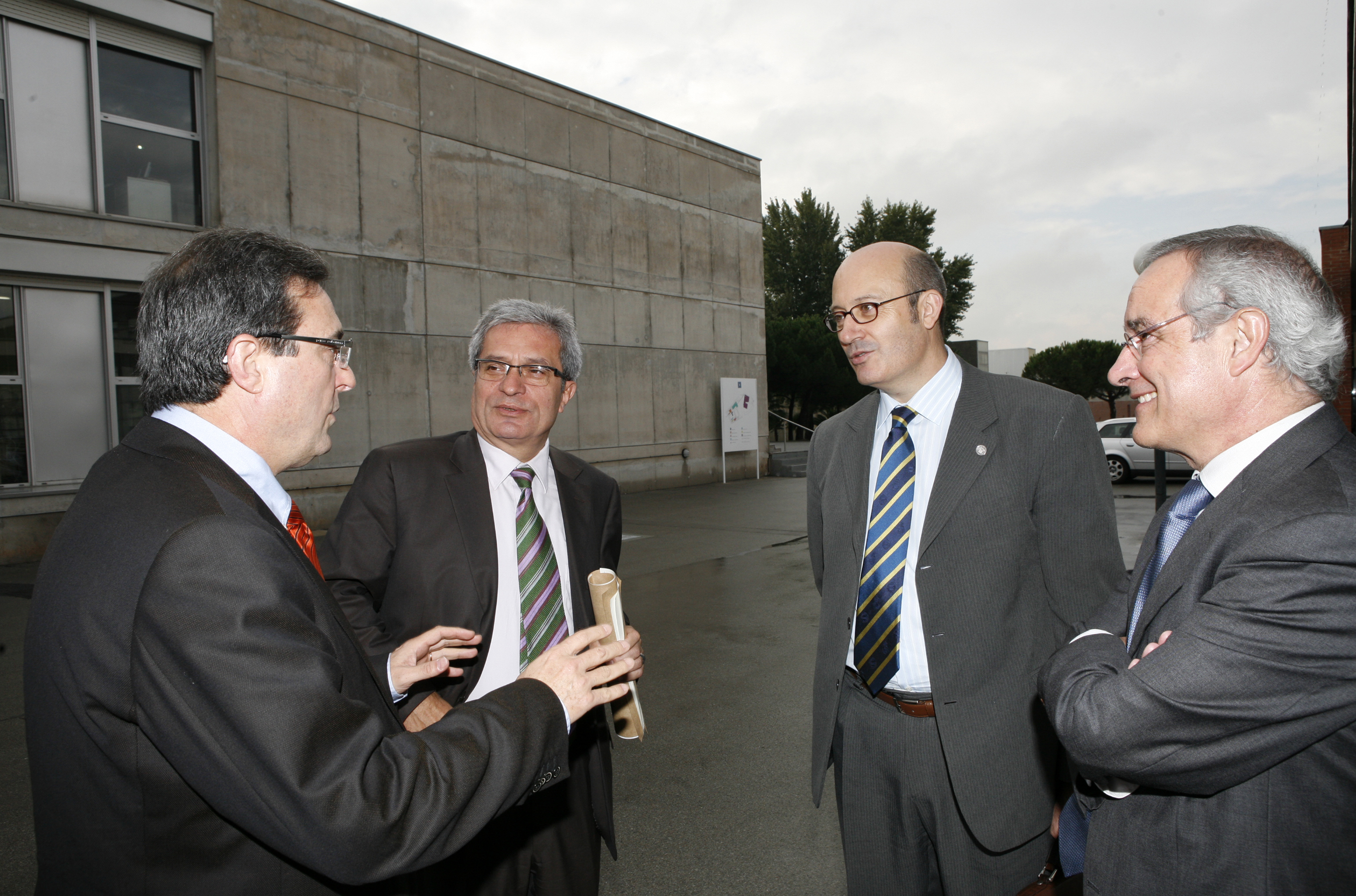 Fotografia del conseller del Departament d'Interior, Relacions Institucionals i Participació Joan Saura i Laporta, Rafael Olmos i Salaver, Josep Milán, Carlos González Zorrilla durant l’acte d’inauguració Jornades Videovigilància.Recommended citation