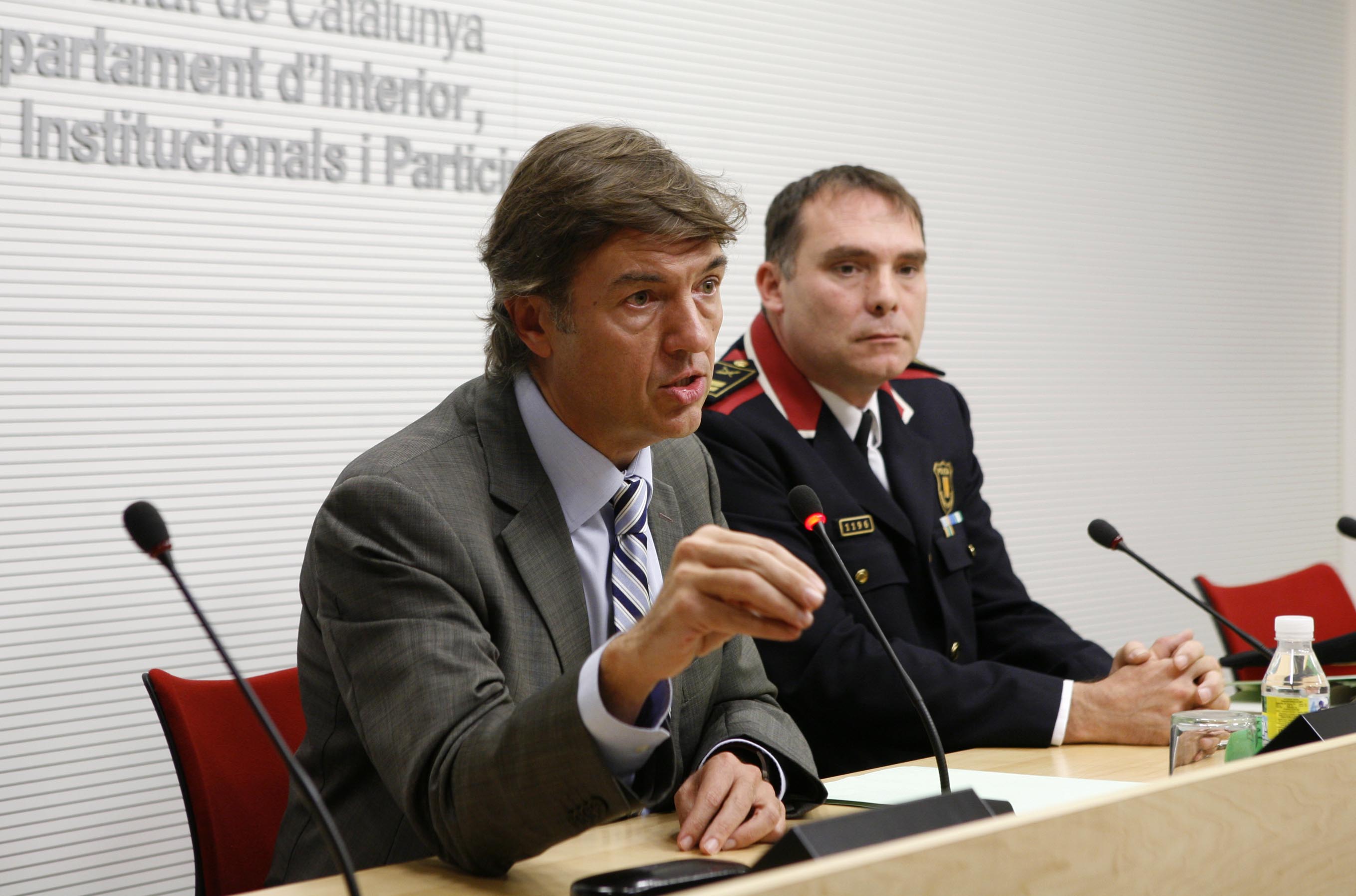 Fotografia de Joan Delort i Menal i Joan Miquel Capell en la roda de premsa per comunicar com el Departament d'Interior, Relacions Institucionals i Participació i el RCD Espanyol revisaran els dispositius de seguretat exterior i interior del camp de l’estadi de Montjuïc.Recommended citation