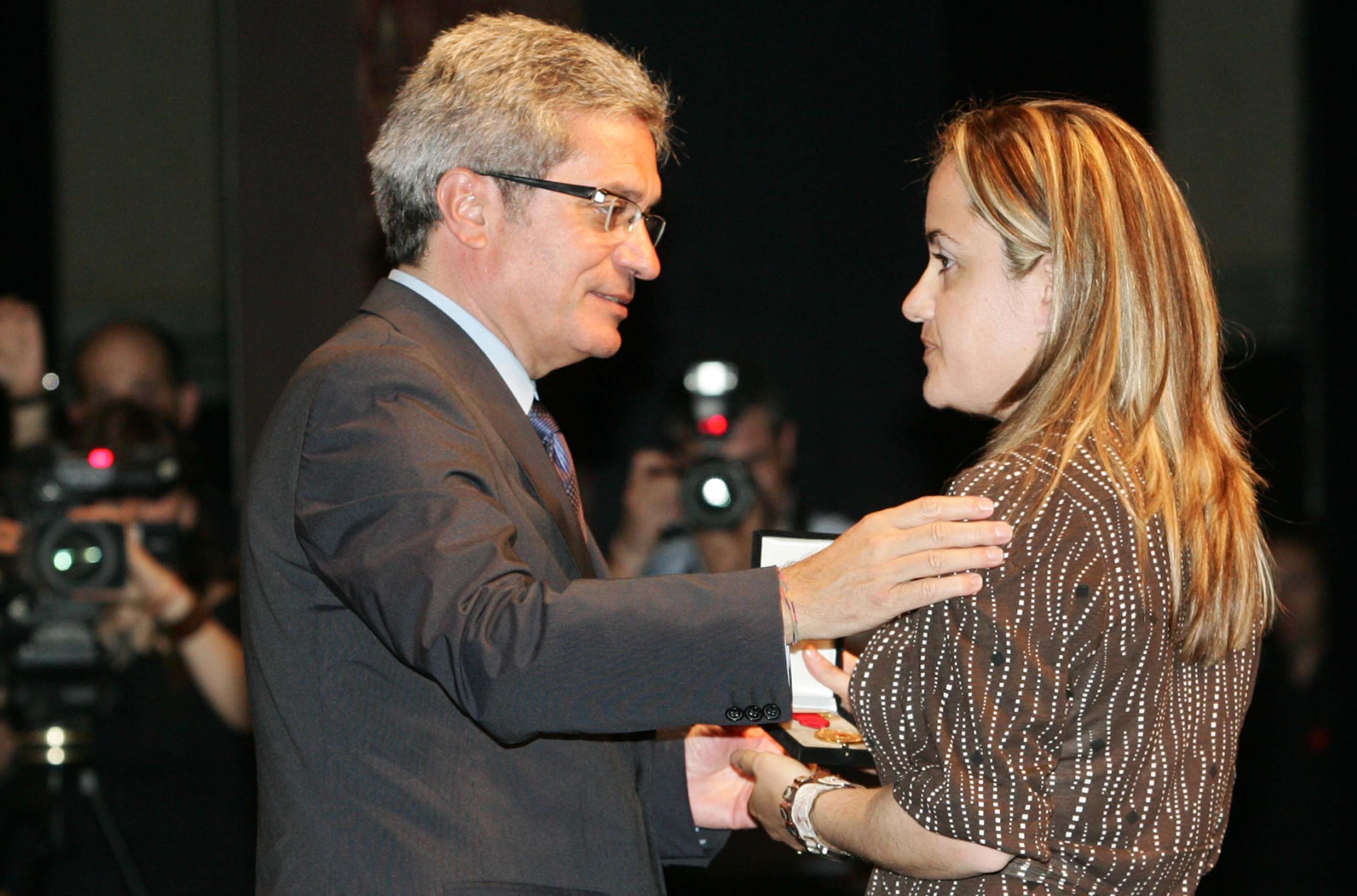 Guillamet, Eva. Lliurament de guardó a la vídua d'un agent. Barcelona: Departament d'Interior, Relacions Institucionals i Participació, 2007. 1 fotografia