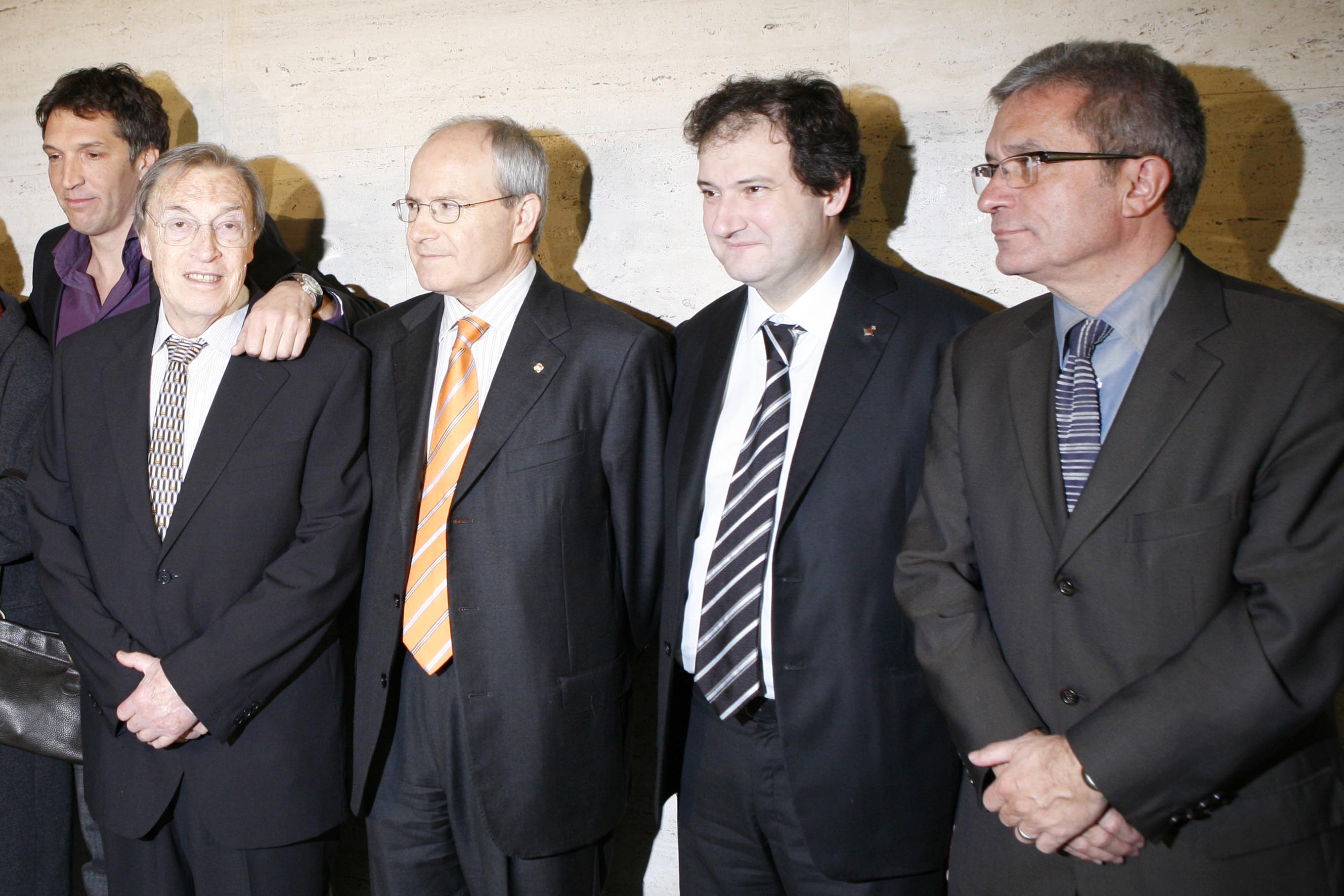 Fotografia del president de la Generalitat de Catalunya José Montilla i Aguilera, el conseller del Departament d'Interior, Relacions Institucionals i Participació Joan Saura, Jordi Hereu, Albert Solé i Jordi Solé i Tura en la presentació del documental 'Bucarest' al CCCB.Recommended citation